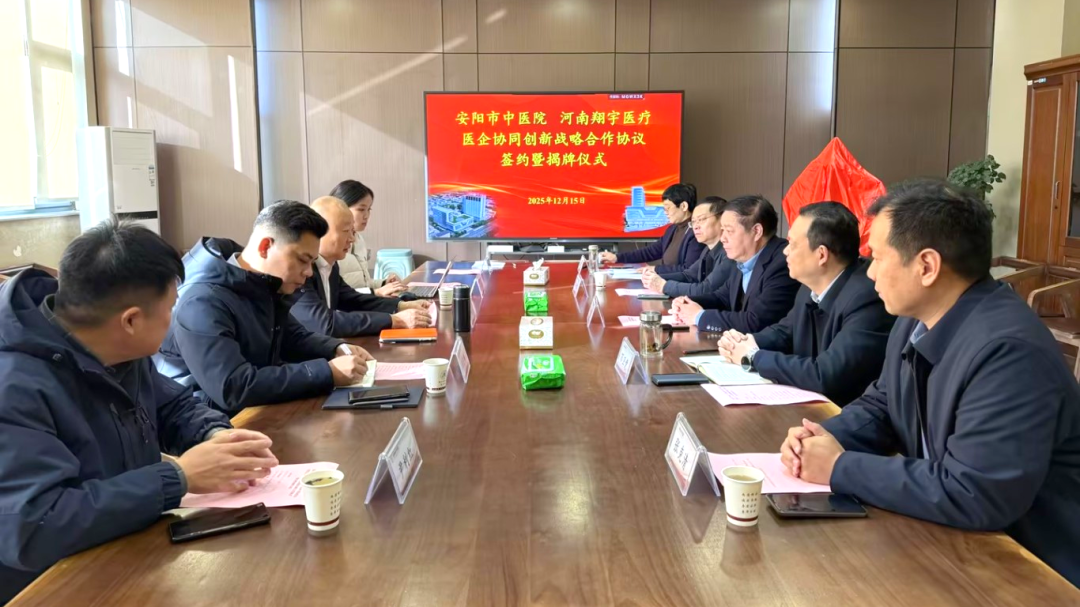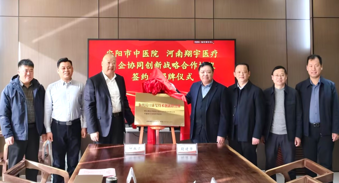 12月15日上午,翔宇医疗与安阳市中医院“医企协同创新战略合作协议”签约暨揭牌仪式在医院行政楼多功能厅举行。此次合作标志着双方将整合医疗资源与技术优势,在康复医学领域开启深度协同创新的新篇章。安阳市中医院院长尉建华、纪委书记万卫党,副院长齐德军、张克清等医院核心代表,以及翔宇医疗董事长何永正、豫陕宁大区经理鹿忠麟等共同出席仪式。