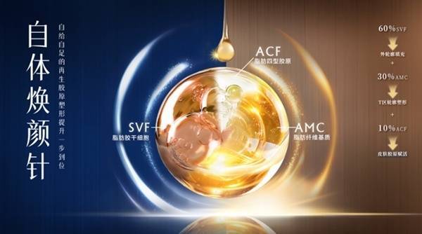 星荣整形带来了其在医美注射领域的最新成果——“星荣·自体焕颜针”。该项技术凭借一次性提取三种超浓缩脂肪胶原基质(SVF-Gel, AMC-Gel, ACF-Gel)的研创技术,实现分层抗衰、精准塑形的效果。