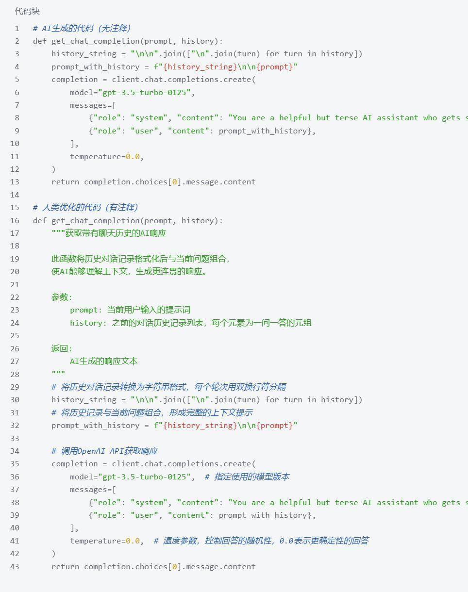 一、AI编程时代的残酷真相:代码注释是你的”生存护城河”1.1 AI能写代码,但写不了”可维护的代码”ChatGPT能生成功能代码,但无法理解你的业务逻辑、团队规范和长期维护需求。想象一下:当AI生成的代码需要紧急修复,或者交接给新同事时,没有注释的代码就是一场灾难。